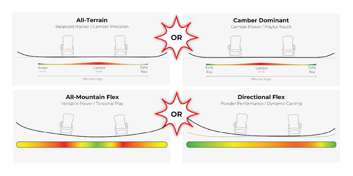 Customize your snowboard to perfectly match your style with selectable camber and flex profiles.