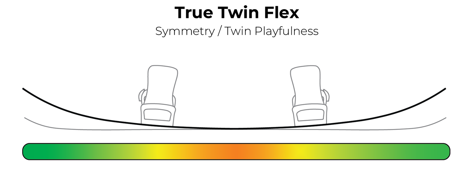Balanced Tip and Tail Flex: Symmetrical and soft at both ends, providing playful, forgiving turns, smooth transitions for switch riding, and improved float in powder.